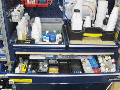 Sur la route 5 camions équipés en outillage et pièces diverses avec des techniciens formés à la fine pointe de la technologie sont en mesure de faire l’installation, l’entretien et la réparation des systèmes de traitement d’eau de toutes les marques tel que