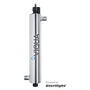 Ce dispositif est installé à l'entrée d'eau que l'on branche sur la conduite principale et qui désinfecte ainsi toute l'eau de la maison. Son procédé de désinfection consiste à faire passer de l'eau à travers une source lumineuse (l'ampoule) qui émet des rayons UV entre 200 à 390 nm (nanomètre), la longueur d'onde optimale de 254nm éradique les micro-organisme telle que les virus, bactéries, parasite, algues, levure, moisissure, E coli, Protozoaires, kystes Cryptosporidium et les kystes Giardia etc. Cette lampe est protégée par une gaine qu'on nomme le quartz. Elle renferme du mercure et un gaz inerte, généralement de l'argon. L'énergie électrique, apportée par un ballast (composant assurant le démarrage de la lampe et contrôlant la puissance électrique transmise), ionise les vapeurs de mercure à un niveau d'énergie générant un rayonnement UV. La lampe est placée dans un manchon (sleeve) transparent, l'eau circulant en couche mince, entre celui-ci et la gaine de quartz, car elle absorbe très rapidement l'énergie du rayonnement UV avant d'être distribué dans toute la maison. Tous les stérilisateurs viennent avec une boîte électronique qui offre différentes options par rapport à certain modèle.